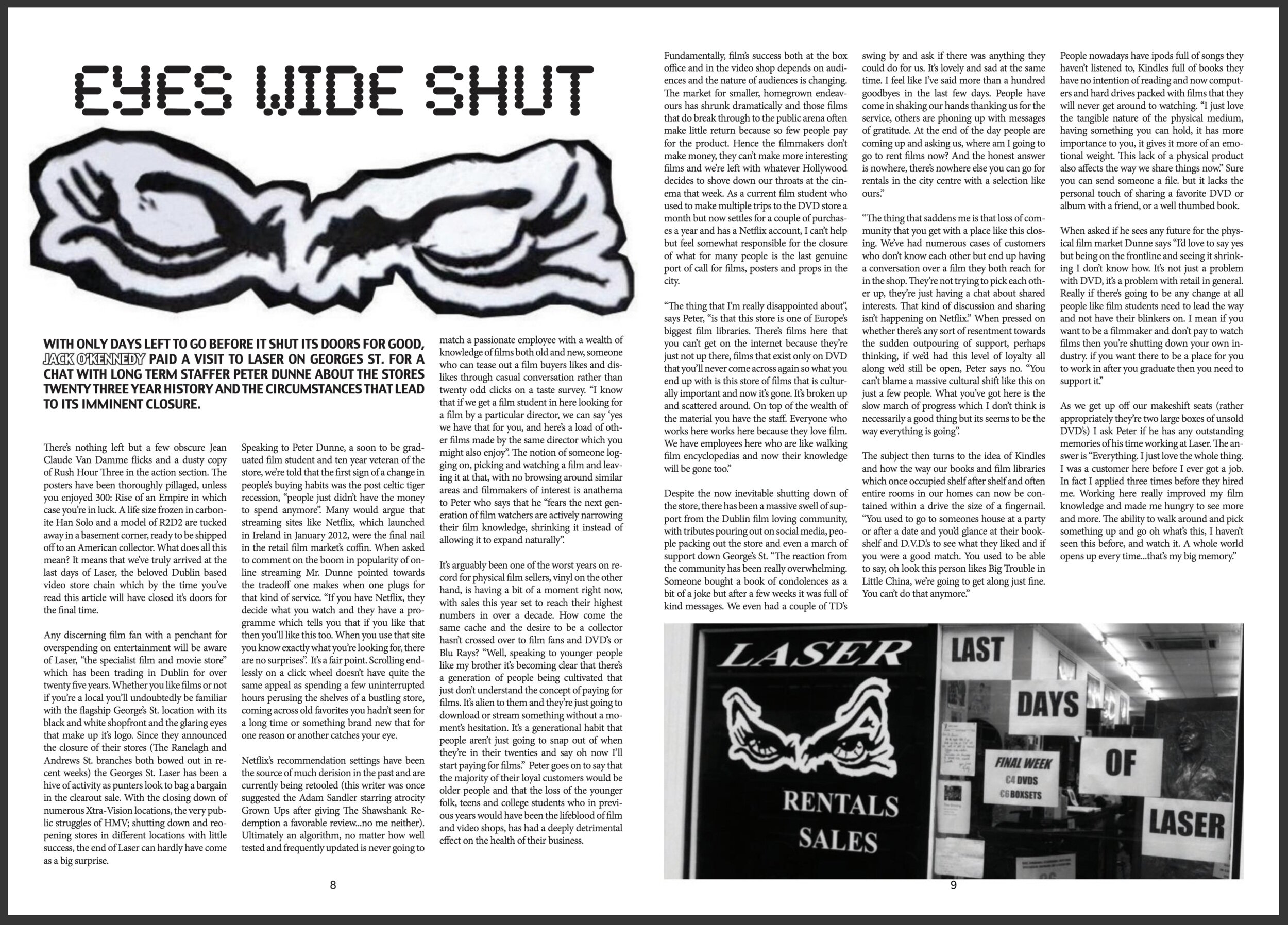 A feature on the closing down of speciality film store Laser I wrote for Trinity Film Review.
